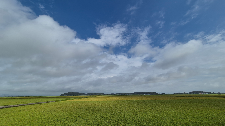 오전에 비가 왔다 안왔다 흐렸다 했는데 도착해보니 이렇게 하늘이 이쁘고 논은 황금 물결이었다.