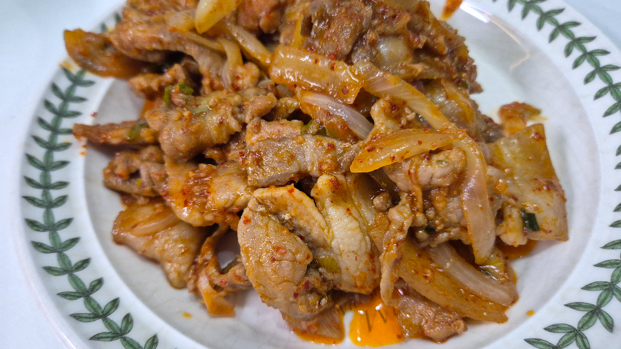 일 마치고 집에와서 아이들이랑 같이 제육볶음 먹으려고 어제 마트에서 돼지 앞다리살 샀던걸로 요리를 해보았다.